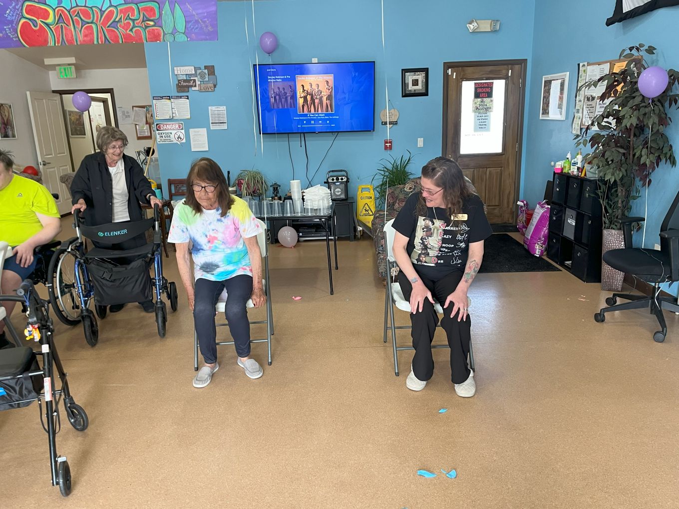 It was so good to see Jackie back. She is a caregiver at our Cedar home. She was out for two weeks for a surgery. We missed her greatly and had to throw her a welcome back party. In the first photo, Jackie would be the one in the black sweater kinda covering her face. The residents played games and won prizes. There was good music and tasty foods. Lots of fun. Most importantly, Jackie is back!